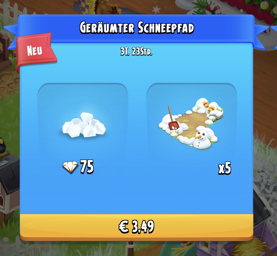 Ehrlich gestanden bin ich überfragt. Es gibt viele Versionen des Schneewegs: rote Schaufel, blaue Schaufel, Handschuhe, Fußspuren, Vogelspuren, zerschmolzener Schneemann und Erde mit ein bissl Schnee.
