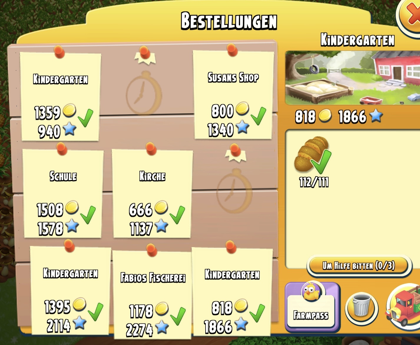 Die Höchstgrenze der täglichen Dankeskarten ist sieben, egal wie oft du geholfen hast.
