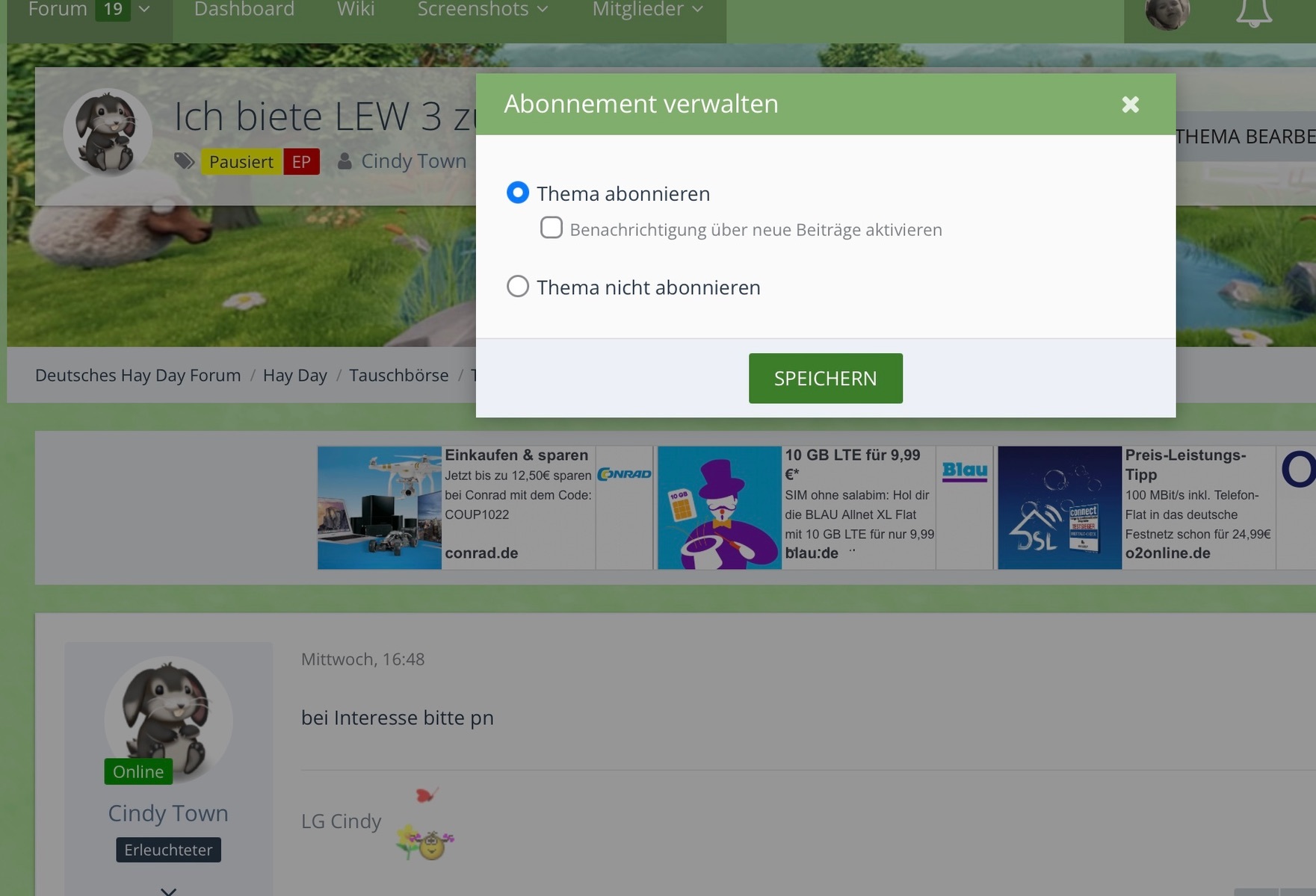 Cindy Town ich mache das mit der Variante „abonnieren“. Für die Screenshots habe ich mir erlaubt ein Inserat von dir zu verwenden.