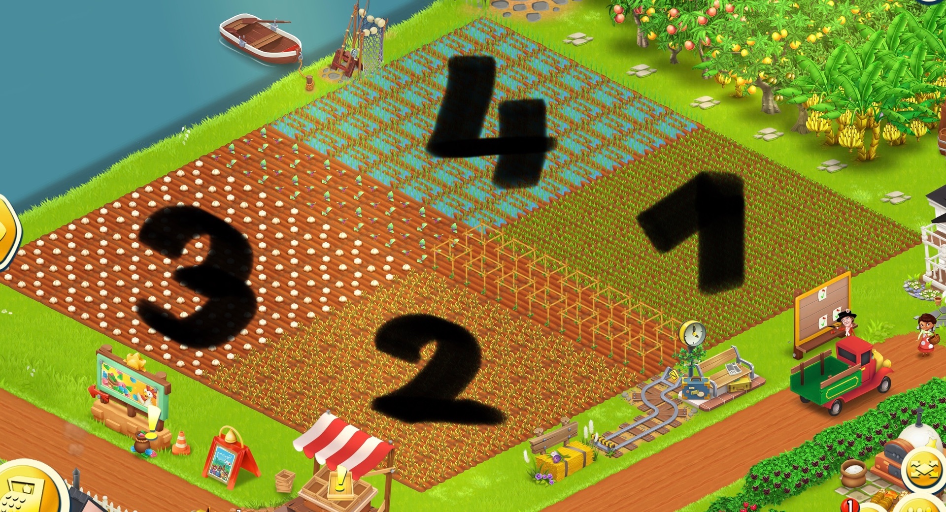 Außerdem habe ich neben der Villa noch 12 Felder, die ich immer beim Wecken der Haustiere mit Tomaten bestücke. Wenn die reif sind weiß ich dass die Haustiere auch wieder zum Wecken sind.