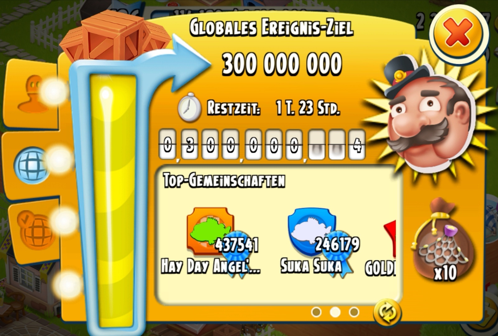 Bei uns stehen jetzt 141 Hühner in der Anzeige - - - ich werde aber eher auf das noch verfügbare Röllchen und die beiden Puzzleteile hinarbeiten, statt die Diamantprämien zu erwerben.