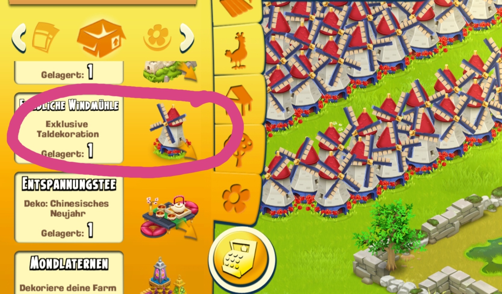 Alles in allem möchte ich von meiner Seite festhalten: mit dem jetzigen Wissen hätte ich auf diese mikroskopisch kleine Windmühle eher verzichtet - die 599 zeitweilig auf der Farm platzierten Teile werden bei genug Langeweile wieder in der Versenkung verschwinden und ich werde zukünftig meinem Grundsatz treu bleiben: nimm keine Deko aus dem Spezialshop vom Tal mit.