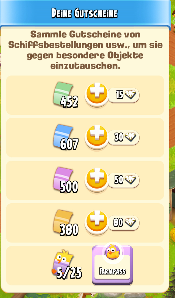Ich konnte beim Einlösen von 10 Geschenkkarten endlich den fünfhundertsten lilafarbenen Gutschein auf meinem Konto verbuchen. Mir ist noch ganz schwindelig und meine Augen sind sogar leicht feucht geworden