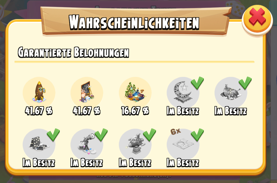 Ich habe mal eine andere Frage: ich bekomme seit mehreren Tagen keine „tägliche Belohnung“ mehr oben rechts! Und wenn versehentlich doch, dann irgendwas, aber gar keine Hüte mehr und auch keine mehr mit Werbung anschauen. Gehts es noch jemanden so?