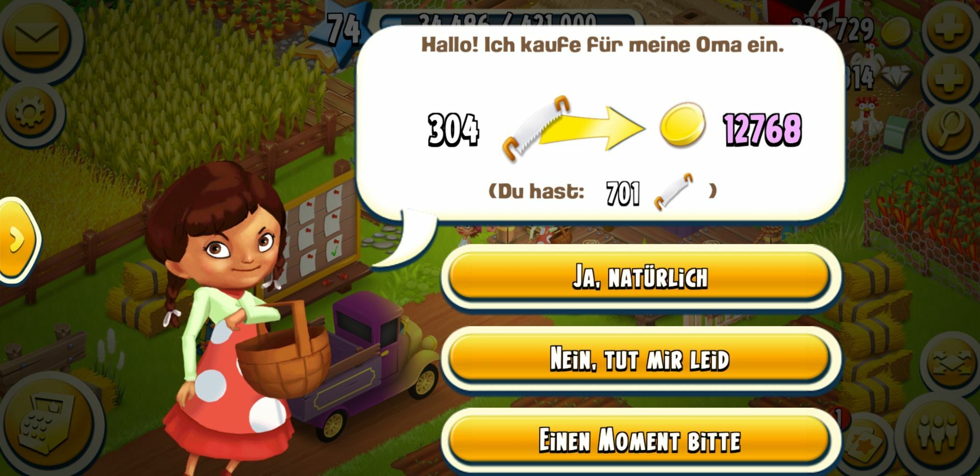 Alles anzeigenJa, so steht es auch auf Hayday. Dumm nur für die, die schon wieder zig Münzen ausgegeben haben um ihren Truck, Haus oder Verkaufsstand wieder herzurichten. A...karte