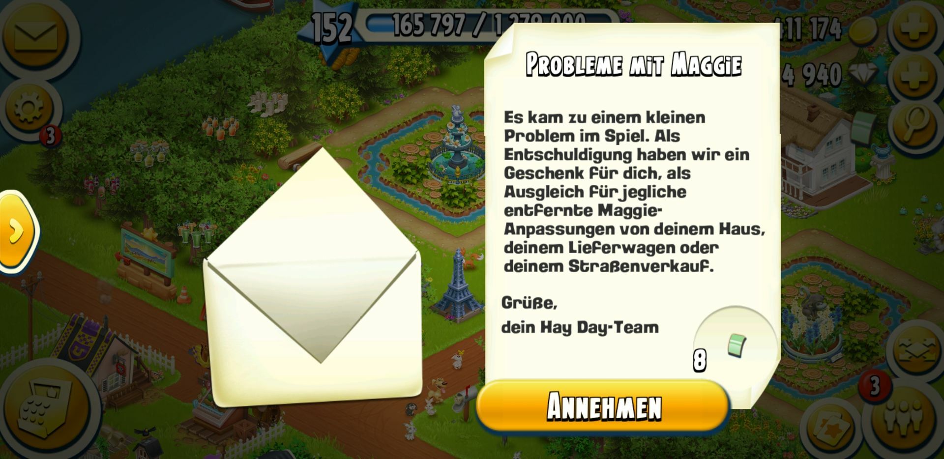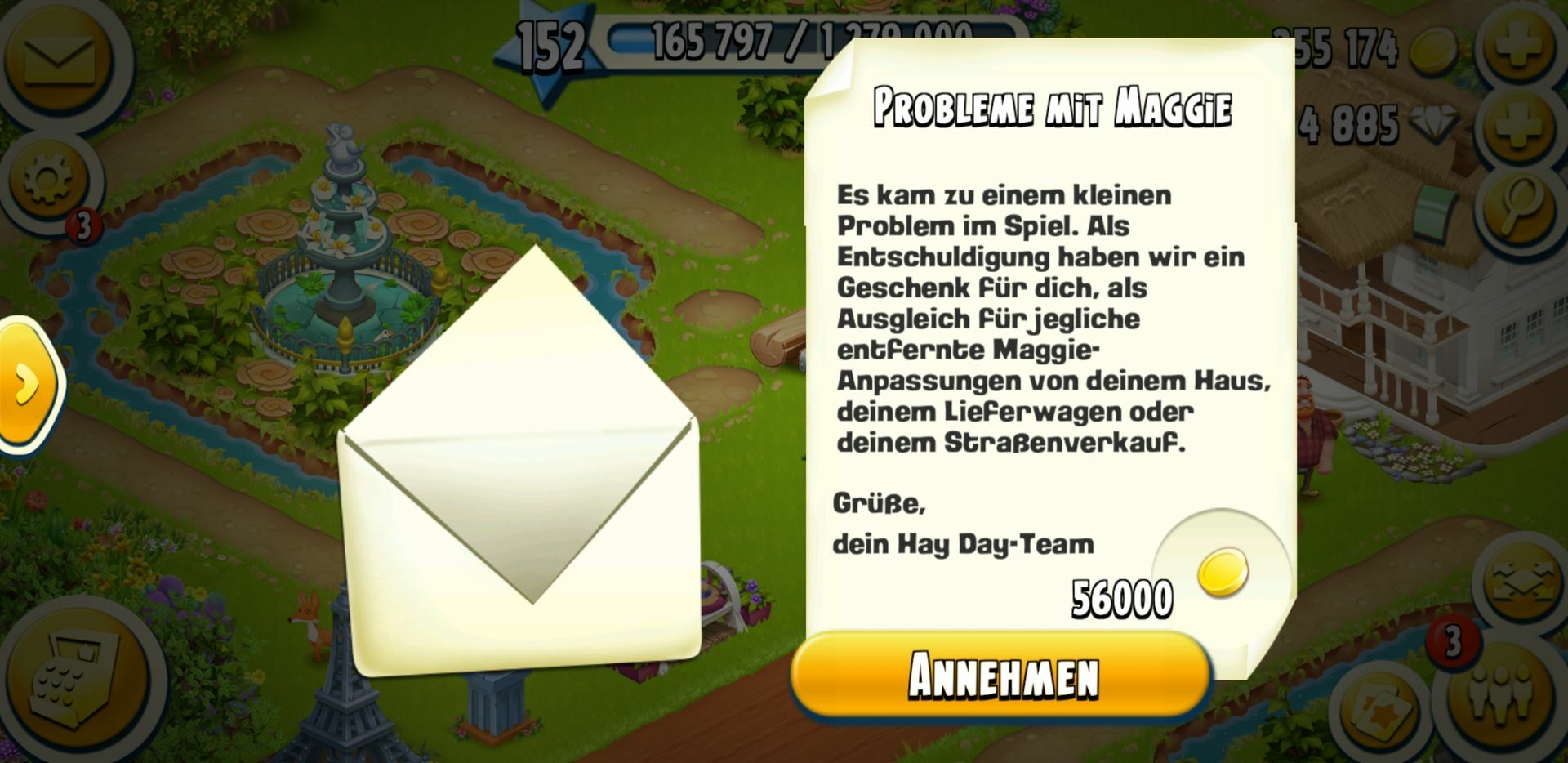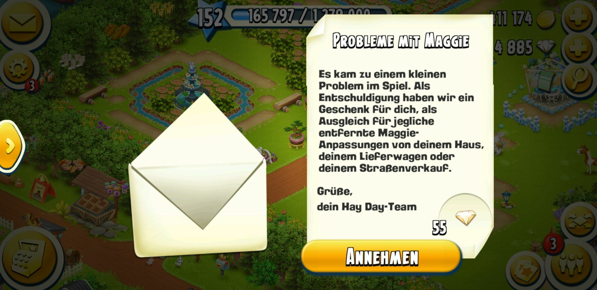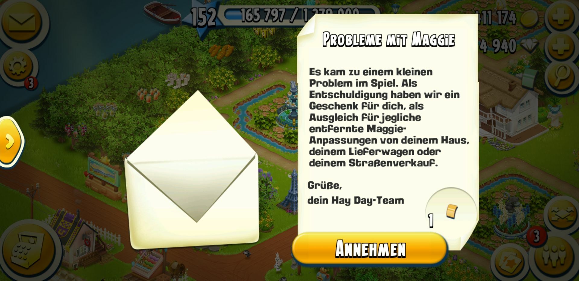 Alfred kam gerade auf meine nicht zertörte farm und brachte mehrmals dieses: