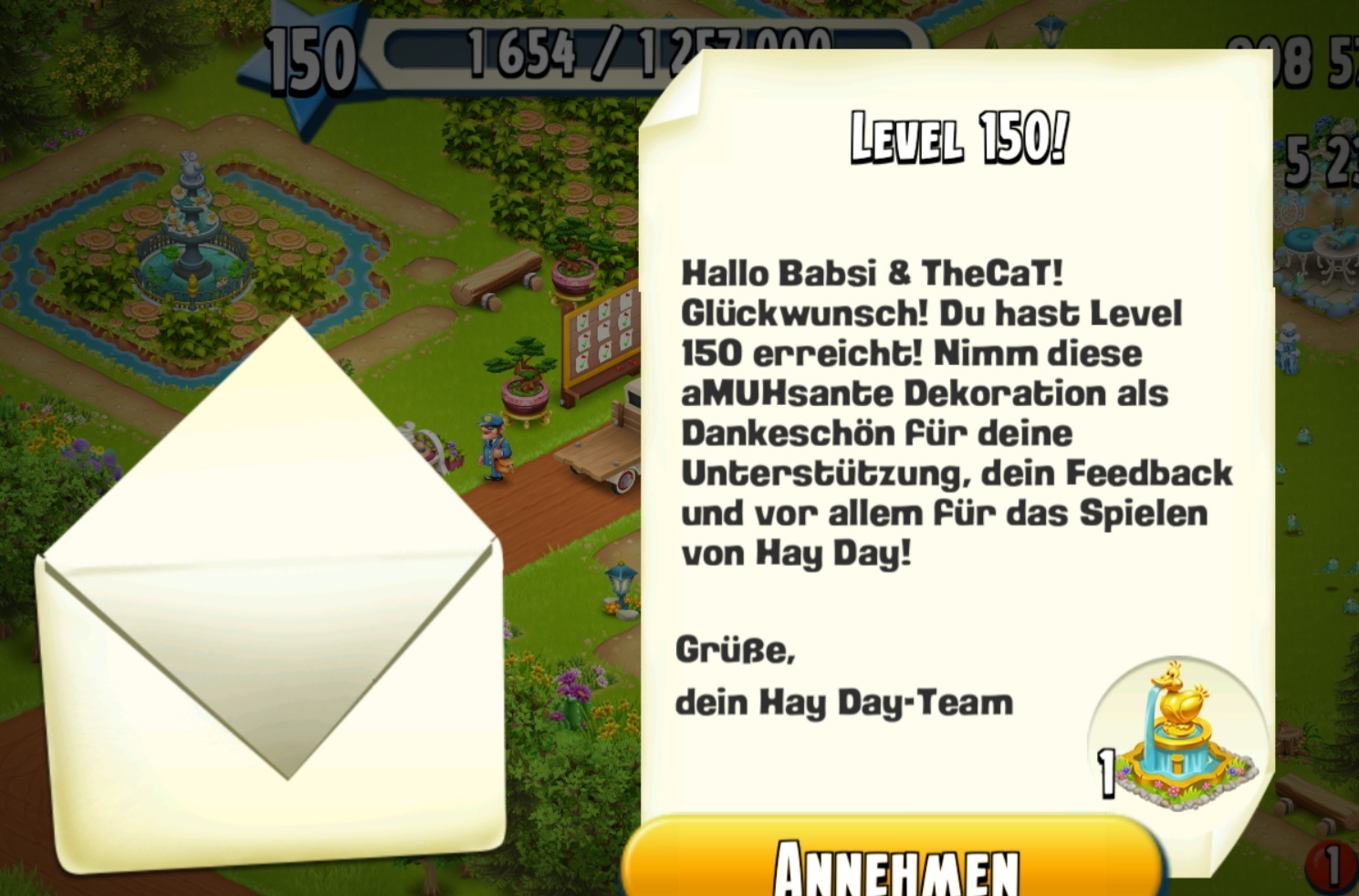 level 150 erreicht = 50 dias + entenspringbrunnen
