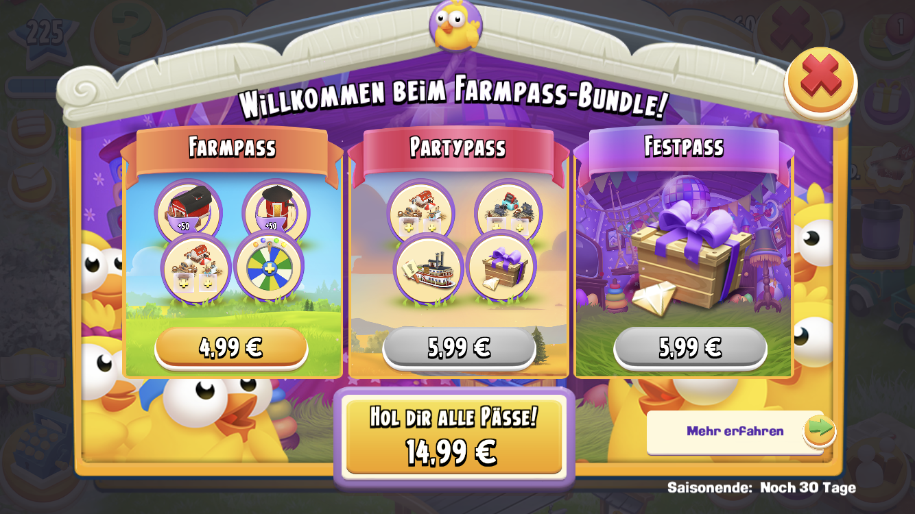 statt der Weiterleitung zur Bezahlung kannst du den Farmpass jetzt aktivieren!