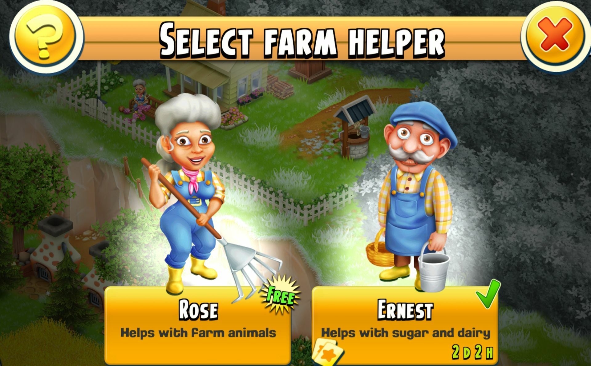 Aktuell habe ich bei einer meiner Farmen Ernest aktiv. Klicke ich oben auf dem Felsen auf die beiden, wird mir folgendes Angebot offeriert: