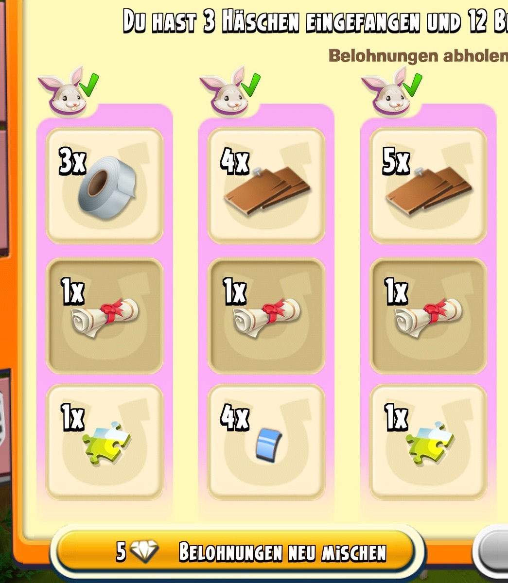 Wenn man Deko tauschen könnte…… bei meinen Derby-Belohnungen habe ich zwei. - Vielleicht lohnt sich das Mischen mit den 5 Dias, wenn du zur Zeit noch kein Rodeo bei den Derby-Belohnungen hast?!