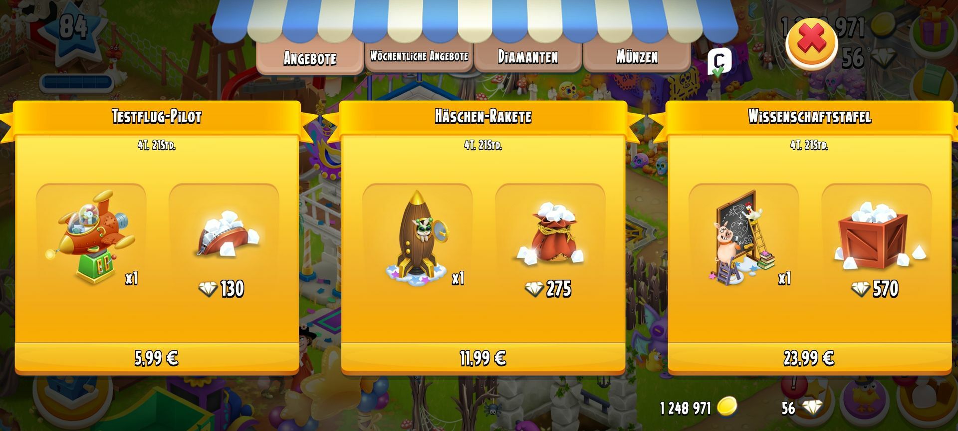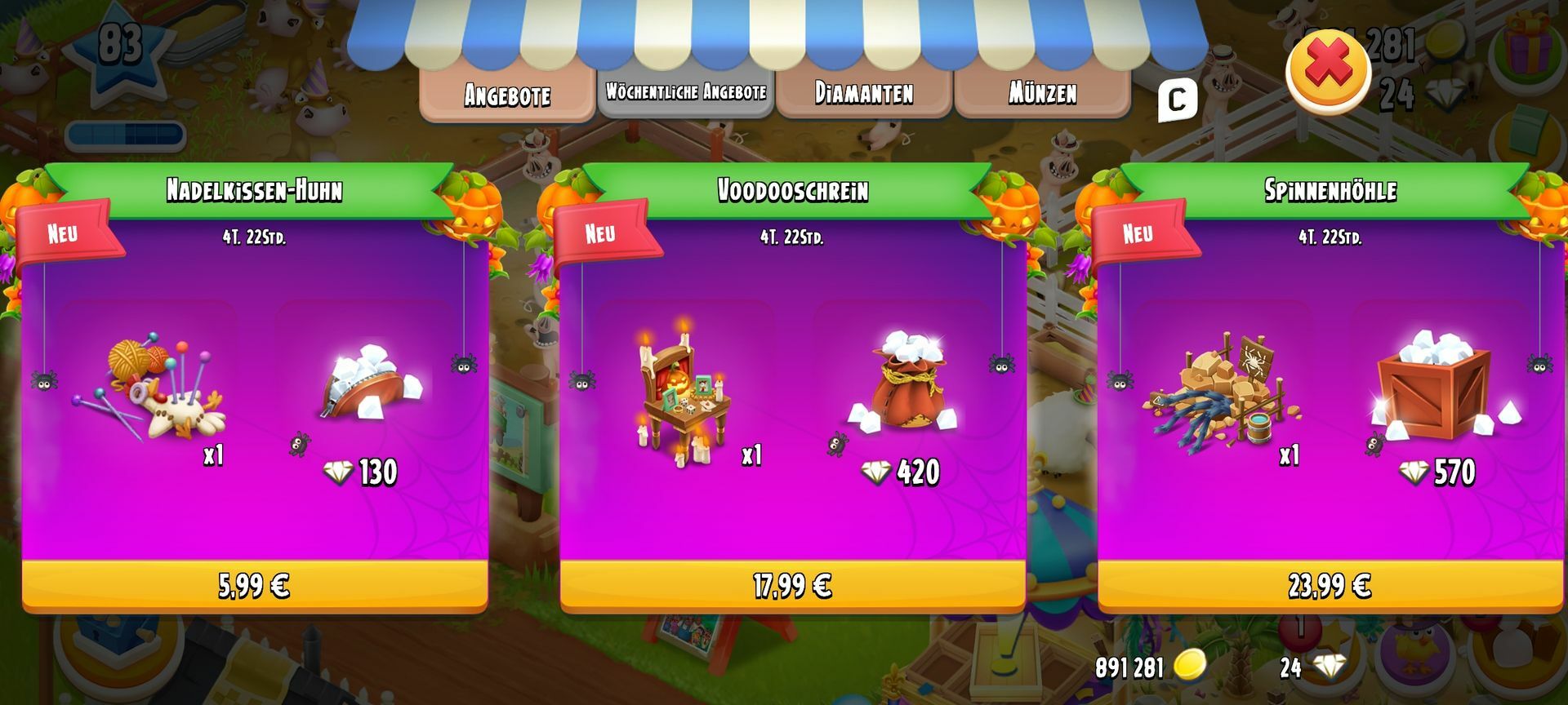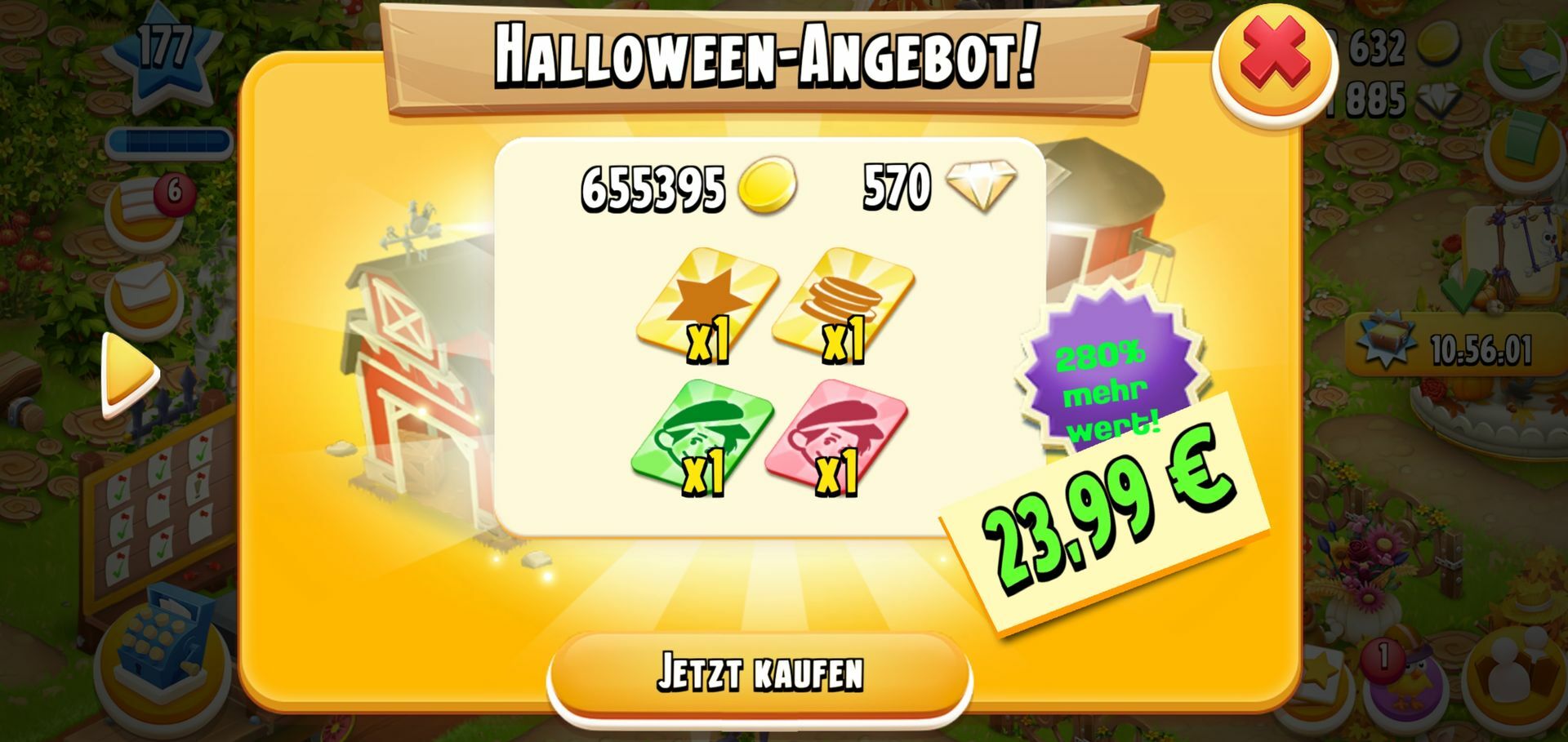 Würde sich lohnen 5€ für die Dias und d die restlichen 3€ für die Deko das Ufo gab's ja letztes Jahr als teuerstes Angebot was Diamanten Deko betrifft 950 Dias für 36€ und das Ufo ich hatte es mir wohl mit Alten Kopf gekauft mittlerweile Kauf ich nur noch Gefühl den FP und meine Ausgabe haben sich Richtung Hay Day reduziert was nicht heißt ich mag es nicht mehr ich seh bloß nicht mehr ein so ne Menge Geld dafür ausgeben