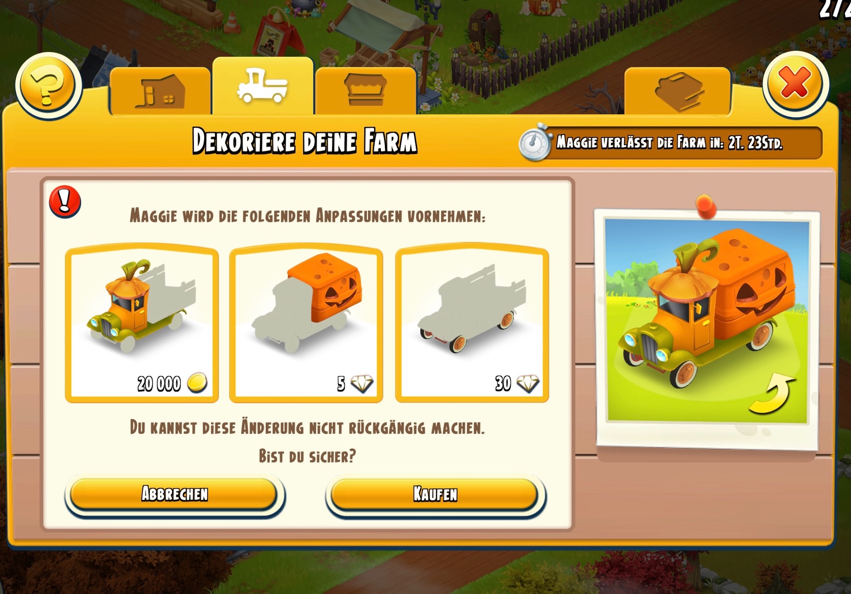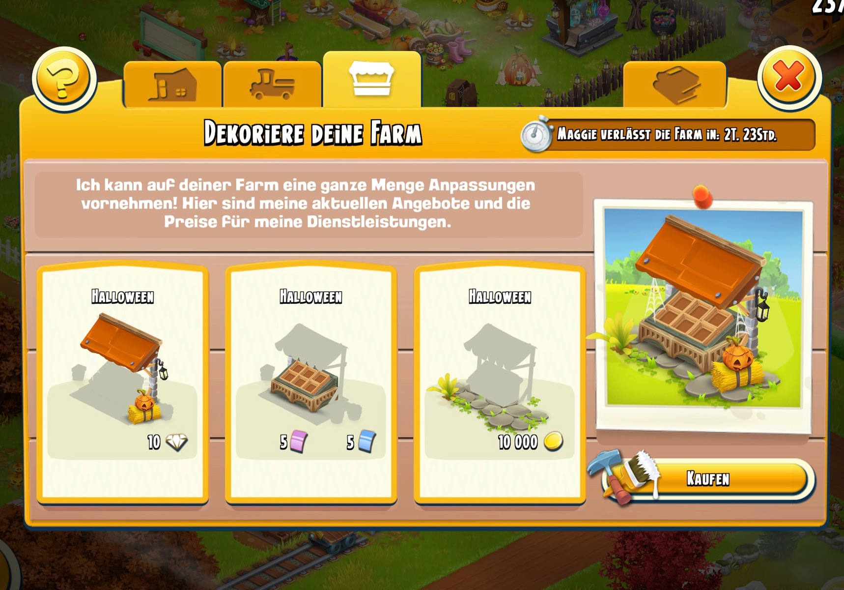 Es wurde doch die Halloween-Deko bei Maggie angekündigt? Bei mir ist es wieder die Alte vom letzten Mal und bei den anderen Spielern meiner GM auch