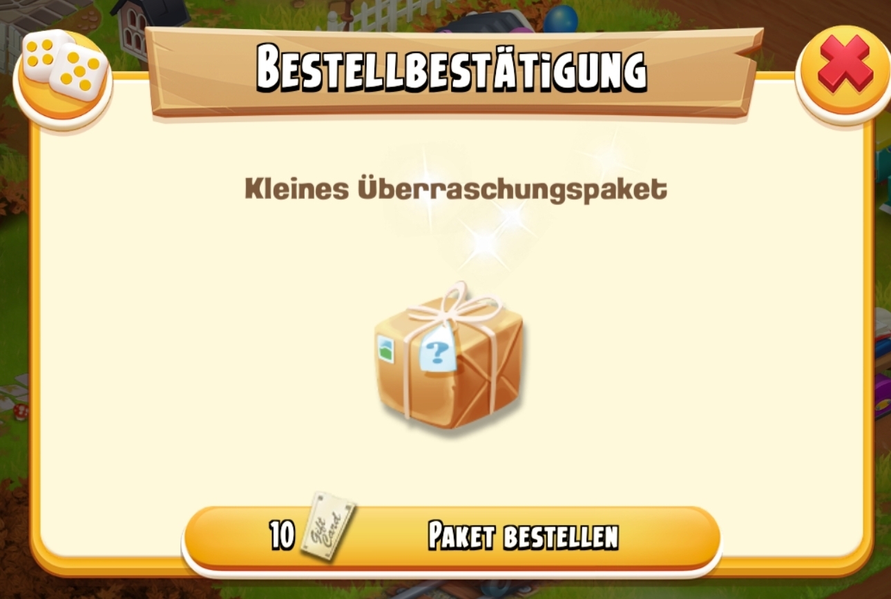 Für die Dankesbriefe kannst du ja selbst das Paket wählen. Du kannst ja auch ein Dekopaket oder ein Werkzeugpaket oder Stadtpaket oder was sonst so an Sonderpaketen da steht nehmen.