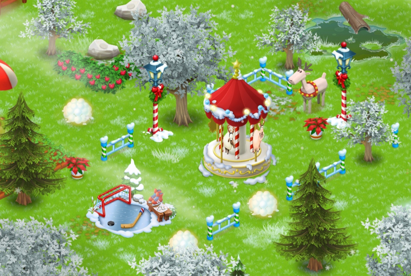 Alles anzeigenIch kann nicht klagen. Außer meiner Hauptfarm haben alle Babyfarmen diese knuffige Schlittschuhbahn mit dem Tor bekommen. Eine meiner Babyfarmen hat sage und schreibe 14 Rentiere. Die kann ich gar nicht alle aufstellen. D. h. könnte ich schon, aber das ist mir persönlich zu viel des Guten.