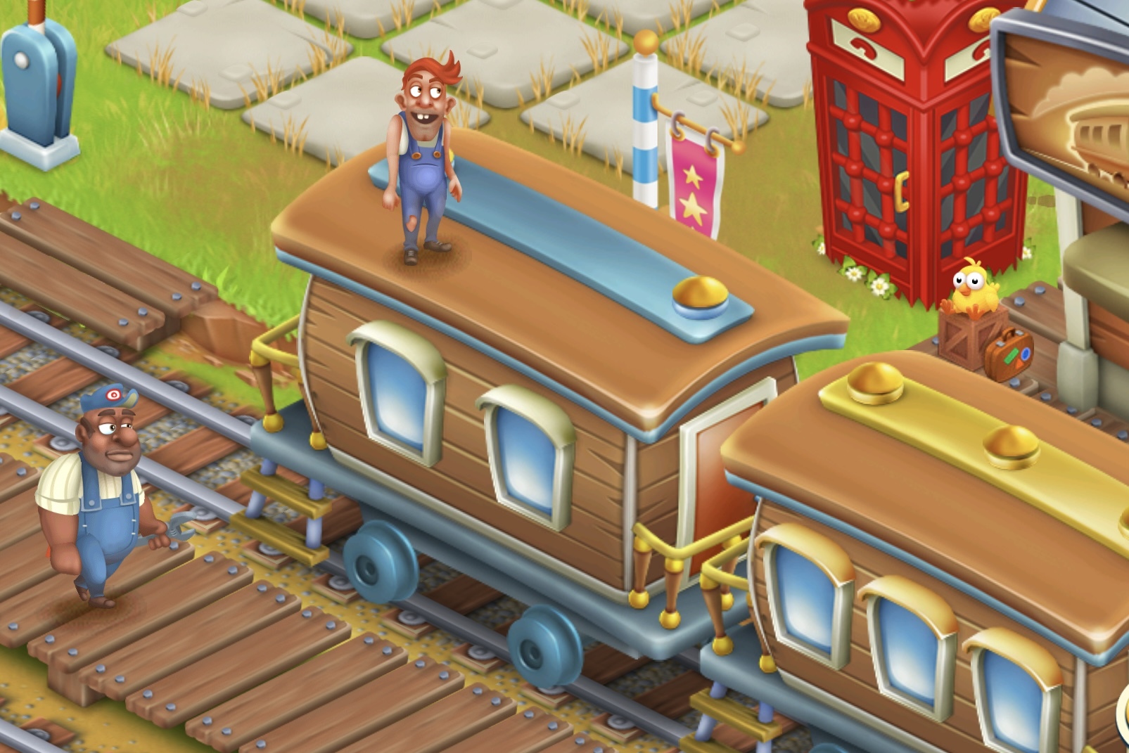 Hay Day ... originell... Bauten und Kuriositäten Moni Muh 8. März 2022 Was macht denn der Bengel da auf dem Zug? Nennt man das Bahnsurfen??
