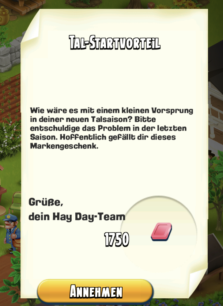 Ich habe gerade 2 Packete geöffnet. Fluttering Eule , ich hab den selben Fehler gemacht. Man kann erst in einem Tag die ersten Sachen kaufen!! Wie ärgerlich! Und jetzt hüpft da vor meinem Haus noch ein dittes Paket mit fast 2000 grünen Token! Die gehören doch noch in die letzte Saison! Hier ein Bild wie der Brief aussah:
