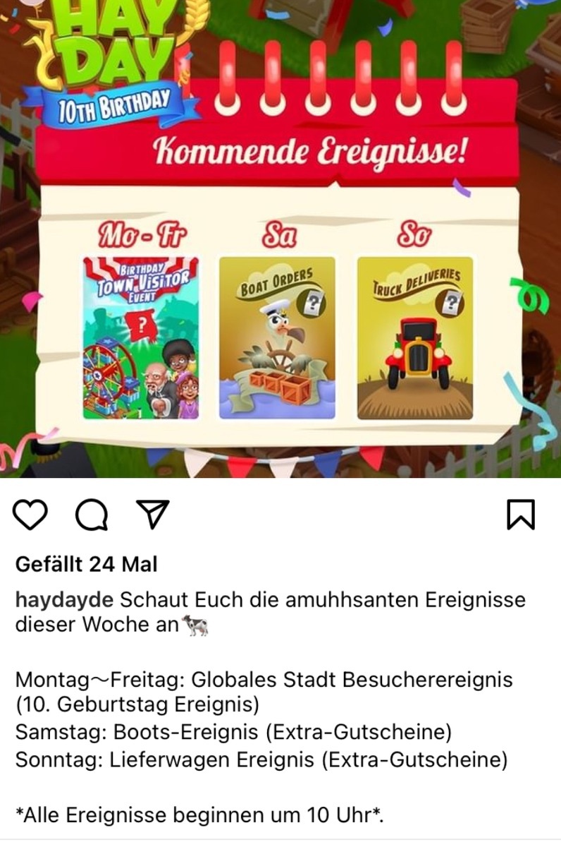Egal was, ich will es gar nicht haben. Dann bleibt noch ein Maggie-Event, wo uns vermutlich zu Schweinepreisen ein neues Outfit für Lkw, Verkaufsstand und Haus angeboten wird. Happy Bithday
