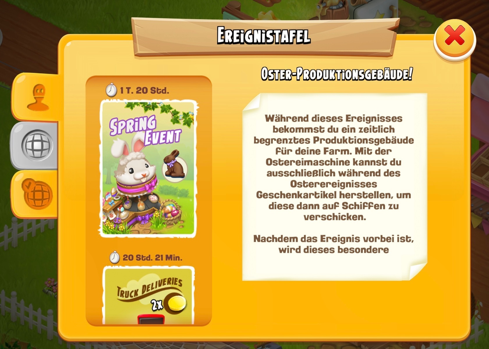 Mich nervt dieses Häschen Derby total! Schon beim letzten Mal hat die Häschenzeit mir gestimmt, kam immer eher.Heute nun die Krönung, Häschenzeit angezeigt, 10 Minuten, Aufgabe angenommen , war bereits nach wenigen Sekunden keine Häschenaufgabe mehr ! Wir sind total bedient! Oder machen wir vielleicht etwas falsch ? 🤔