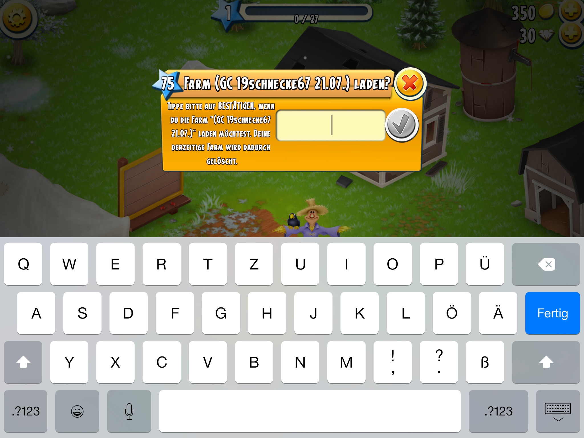 Habe neues IPad. Aber jetzt lässt sich die Farm nicht bestätigen