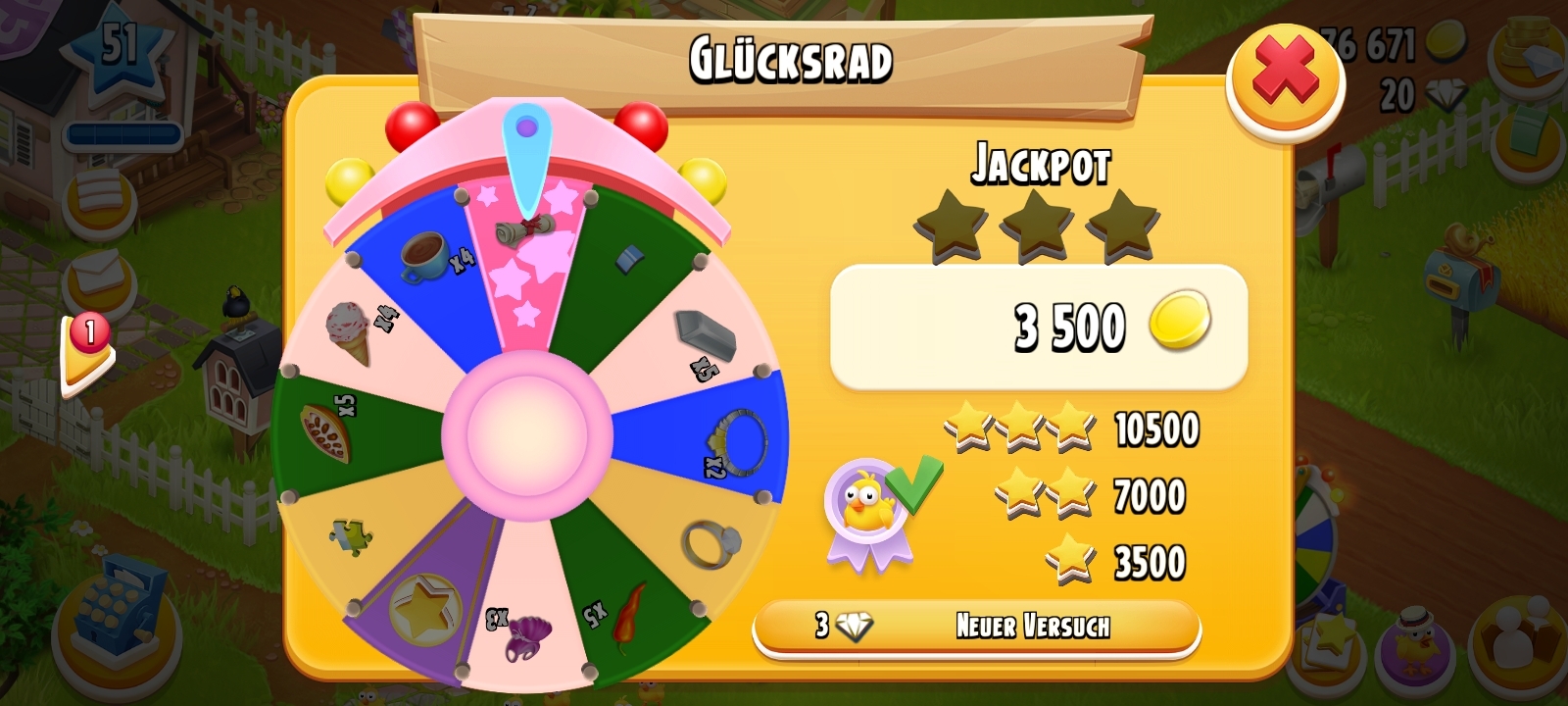 Hatte bei 4 Drehs zweimal ein Puzzleteil und ein Röllchen