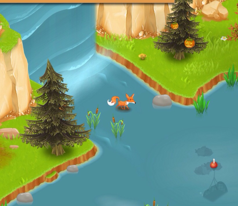 Der Angelbereich ist der wasserfall und als Köder nimmt man ein Huhn