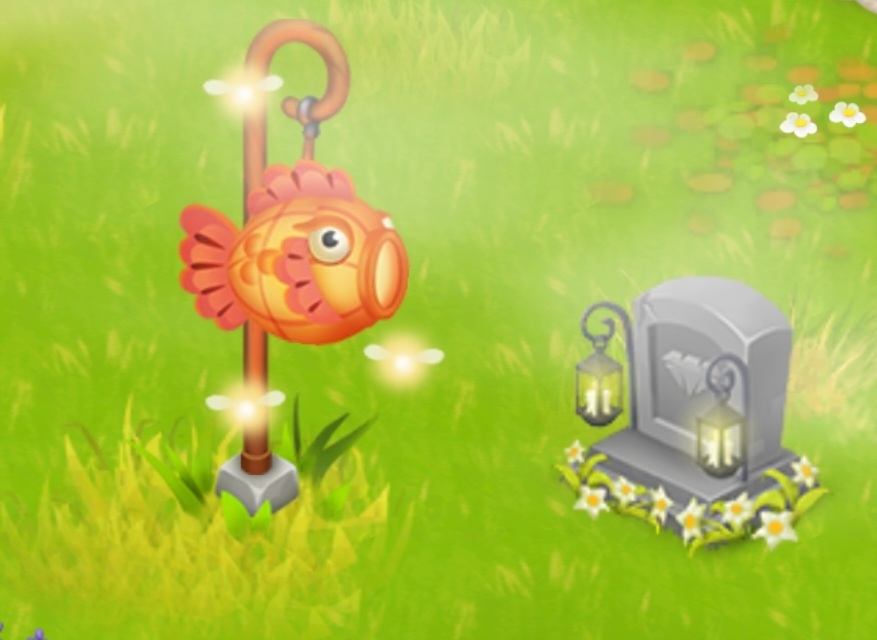 Den Laternenfisch habe ich auch bekommen und noch einen Grabstein