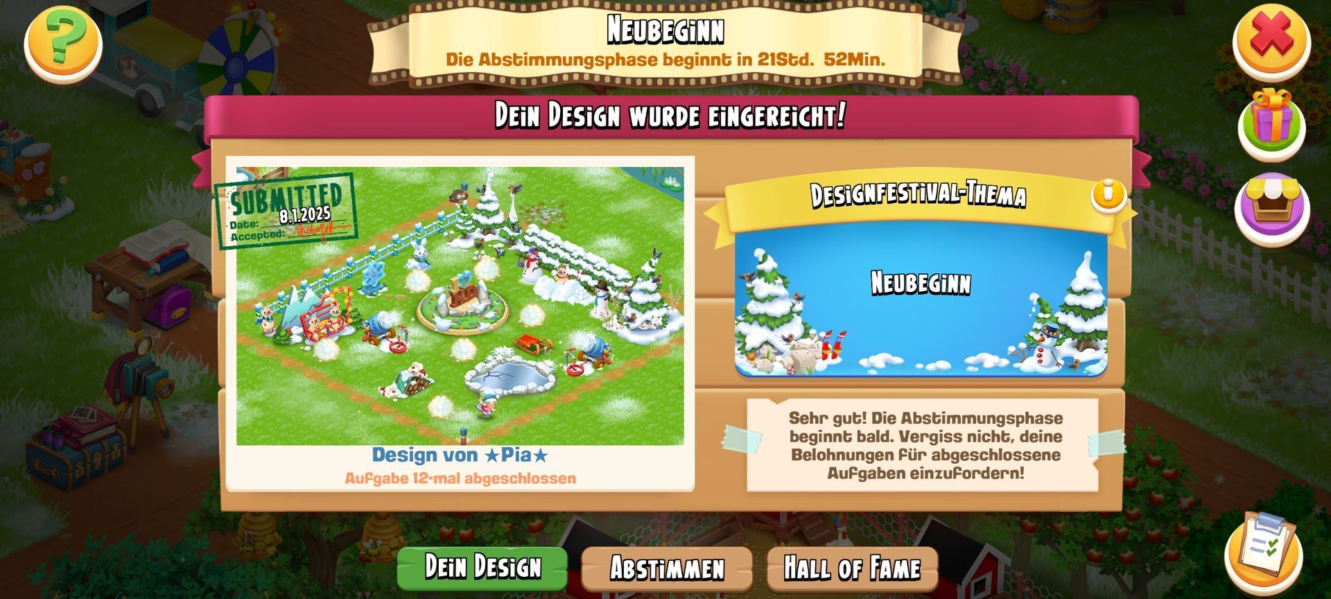 Designfestival Januar 2025 - Testphase drepia71 9. Januar 2025 Hi,bin auch dabei und habe eingereicht. Finde es ganz nett und konnte mit den Filmrollen unter anderem günstig dringend benötigte Pfähle kaufen.😀