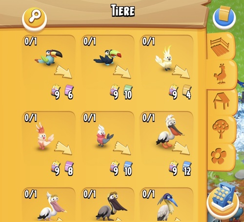 Du musst dir aber vorher unter "Zuhause für Tiere" das Vogelhaus kaufen für 10.000 Münzen.
