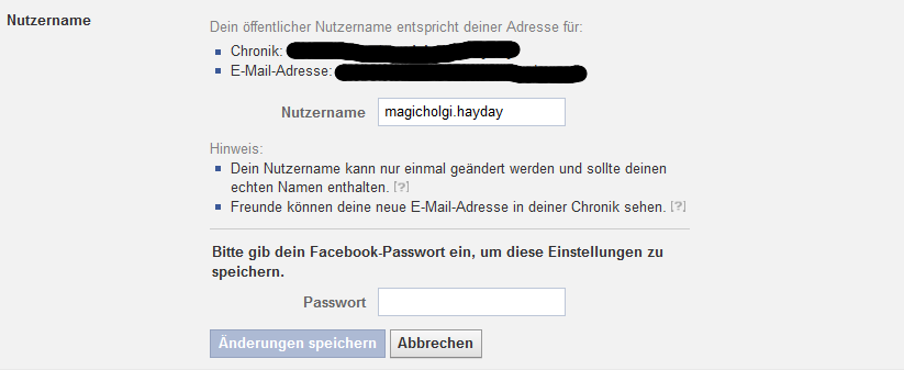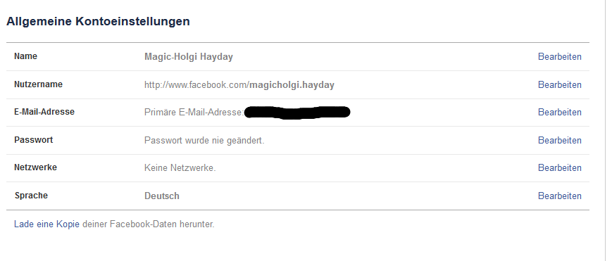 Dann siehst Du folgendes Bild:Jetzt musst Du hinter "Nutzername" auf bearbeiten gehen und siehst folgendes: