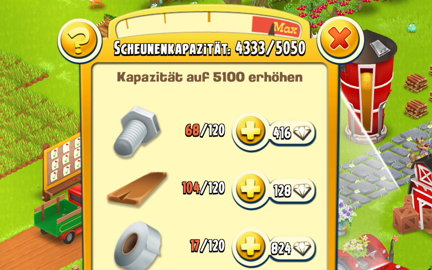 Ausserdem beruht ja alles auf Gegenseitigkeit. Und wir "Grossen" tun uns natürlich leichter den "Kleinen" zu helfen, als andersherum......, wir HayDayler halten halt zusammen