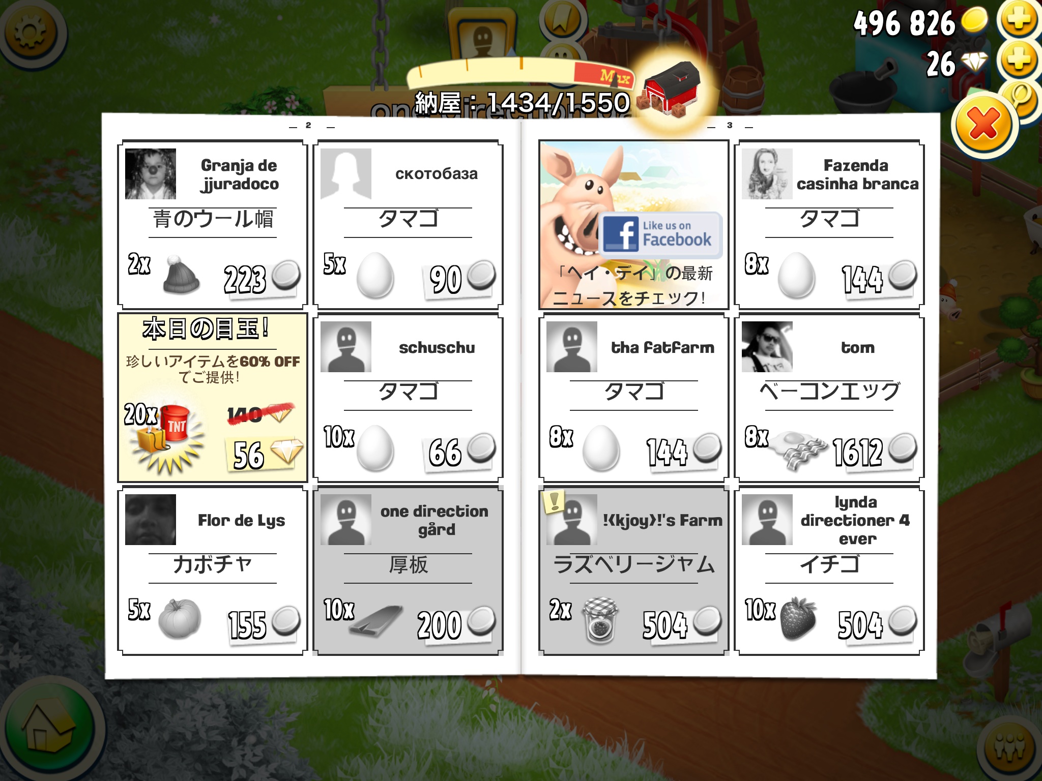 Noch einfacher ist es, wenn du dich mit Facebook verbindest! Dann wirst du auch gefragt, ob du die Level 43 Farm laden willst... jedes Mal!