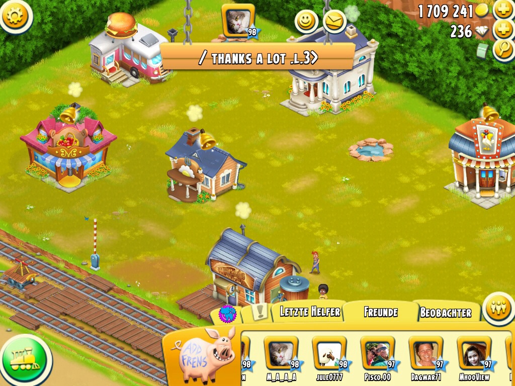 allso klaus_007 jetzt schon level13 und das ab Level 7 ohne diamanten das geht nicht das kann ich dir sagen ich bin Level 12 und brauche noch diamanten das ich schneller weiter komme obwohl ich schon sehr viel erreicht habe (ausbau der Shops privatzug rathhaus usw. ) denn in der Pension geht ohne diamanten nix (bis schon 25% zeit)