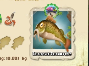 Habe ihn gerade mit einem grünen Köder beim sumpfigen Bereich geangelt.