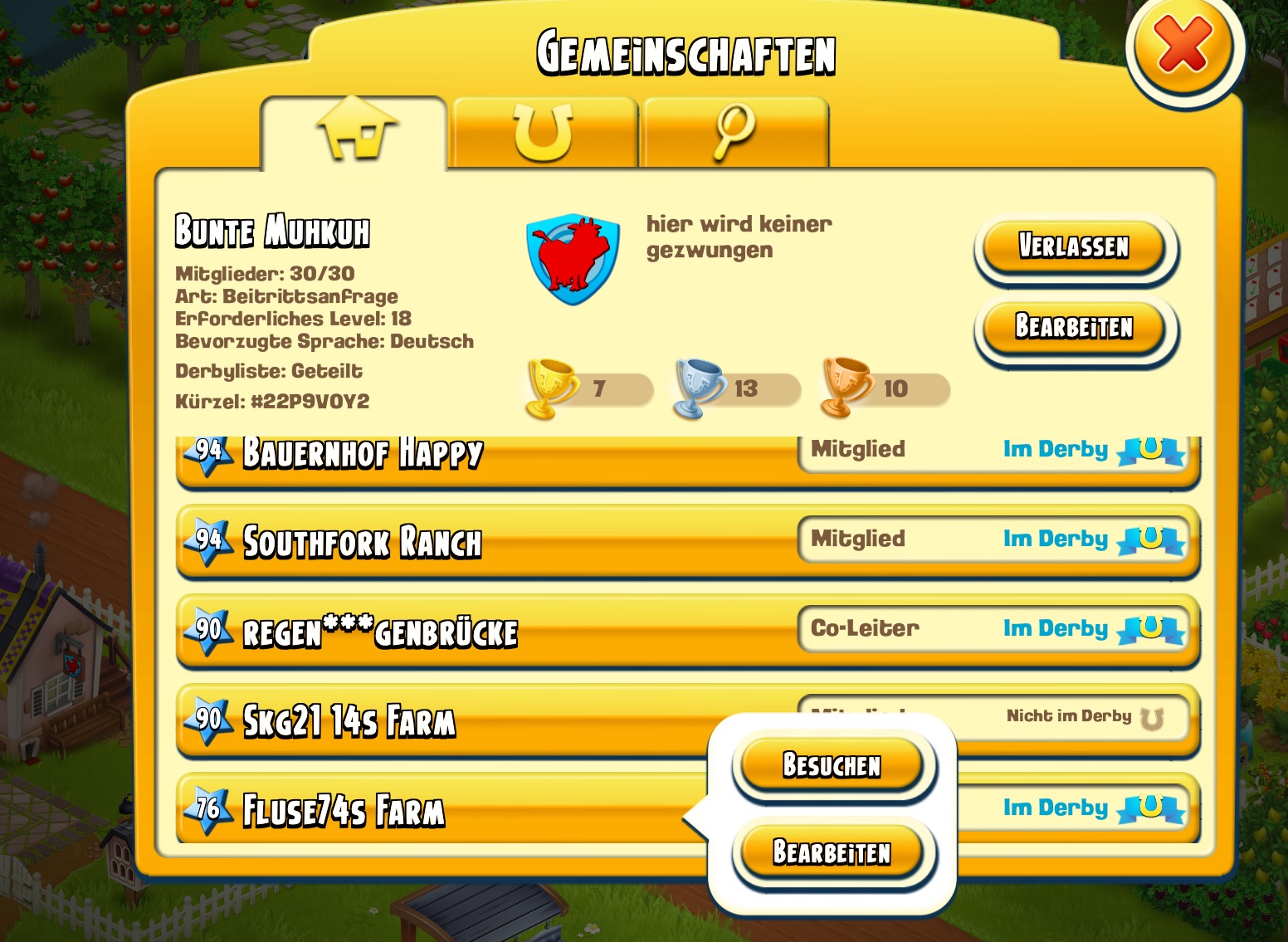 • Halten Sie Ausschau nach besonderen Bingo-Themen-Derbys. Der erste wird sehr bald treffen! In einem Bingo-Derby erhält deine Nachbarschaft ein einzigartiges Bingo-Board voller Derby-Aufgaben. Füllen Sie diese Aufgaben und BINGO! Deine Nachbarschaft könnte zusätzliche Derby-Punkte oder Belohnungen verdienen!