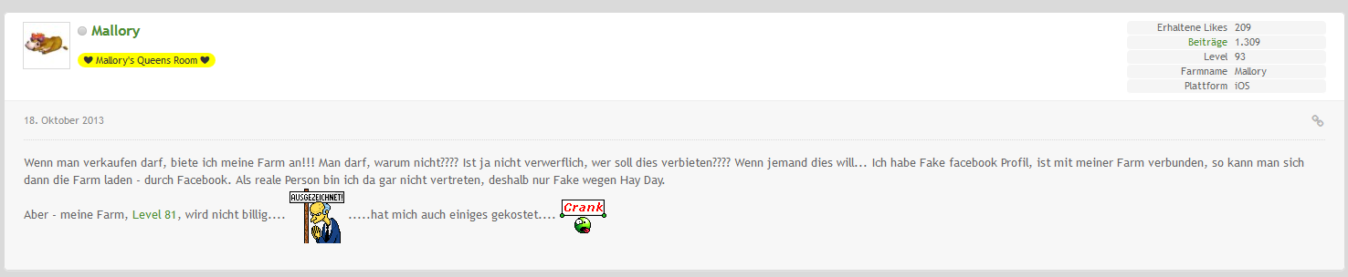 Alles anzeigenPlötzlich kommt Supercell dahinter und sperrt den Käufer wegen eines illegalen Kaufgeschfäftes. Die teure Farm ist weg und nun?