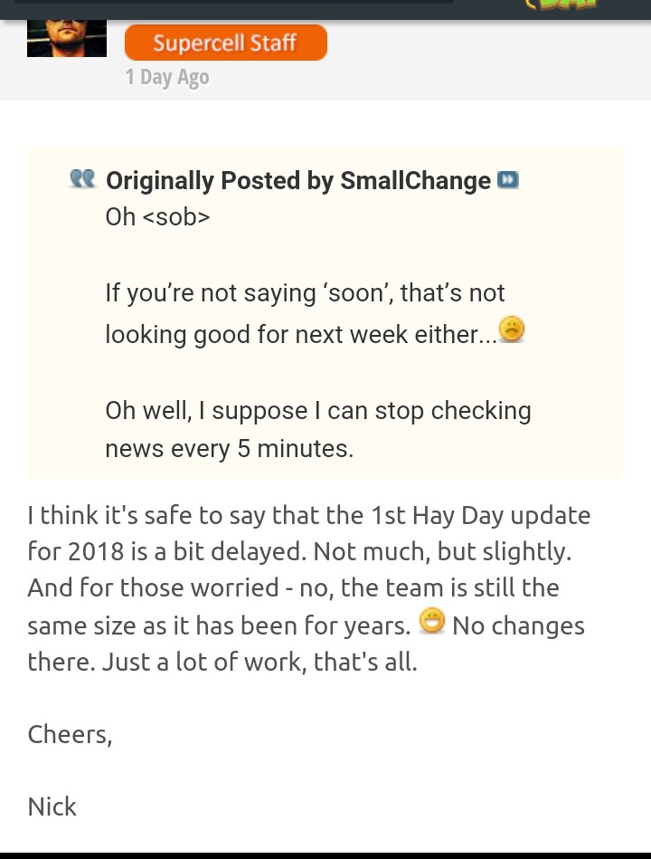 Im SC Forum hat Nick sich gemeldet u Fragen beantwortet zu Sneak Peaks & Update.